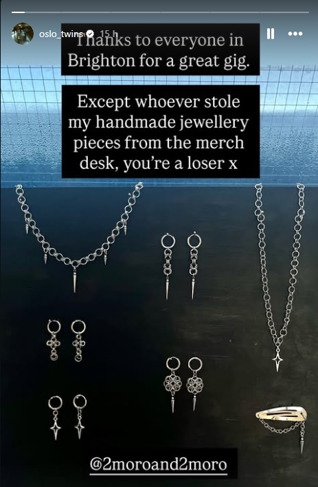 Now on the subject of “None sees the world like we do”…..I joyfully make my way to their merch stall at the rear of the room to lighten my wallet by purchasing their 12” Tresor’ EP. But there’s a commotion, as Claudia is frantically looking around the stall and the floor. It appears that a number of homemade jewellery items have gone on walkabout! This is most distressing to her and a stain on Brighton’s concert going punters! In all the year’s I’ve been gigging, I can’t recall this happening for decades! I’m rather hoping that the person concerned will make a swift return to The Prince Albert with the missing pieces and hand them into staff, in order to pass onto the band! You do know that there’s cameras in the room and that the footage was going to be checked!